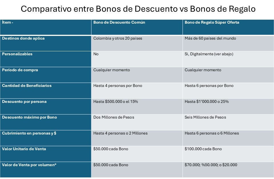 BONO DE DESCUENTO EN VIAJES POR COLOMBIA Y VEINTE PAISES