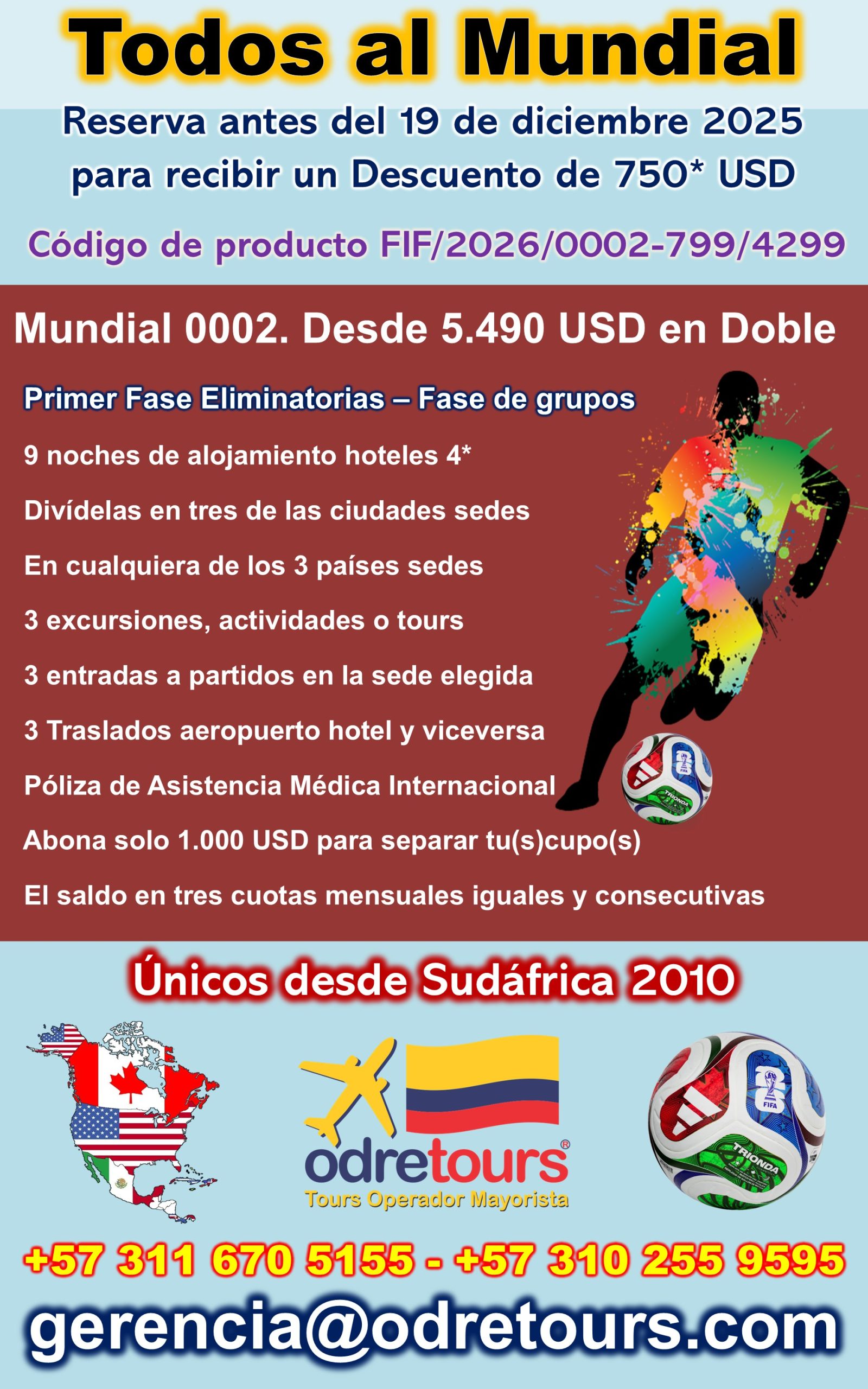 Mundial 002. Desde 6.690 USD en Triple o Cuádruple